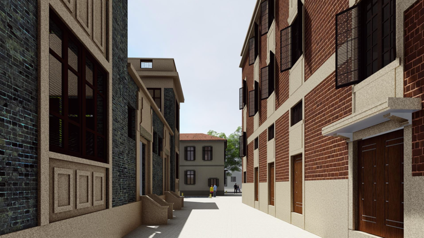 賀衡夫怡廬主樓平移后 效果圖。平移后街區(qū)主入口,有助于實(shí)現(xiàn)歷史建筑單體展示效果