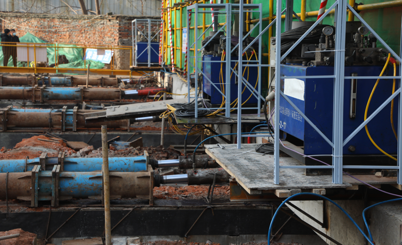 技術(shù),完成整項(xiàng)工程。而在此次平移中,施工人員在每條平移軸線(xiàn)上布設(shè)一個(gè)約100t的千斤頂,每移動(dòng)約500毫米進(jìn)行一次托換,以確保平移過(guò)程中穩(wěn)定性、可靠性。
