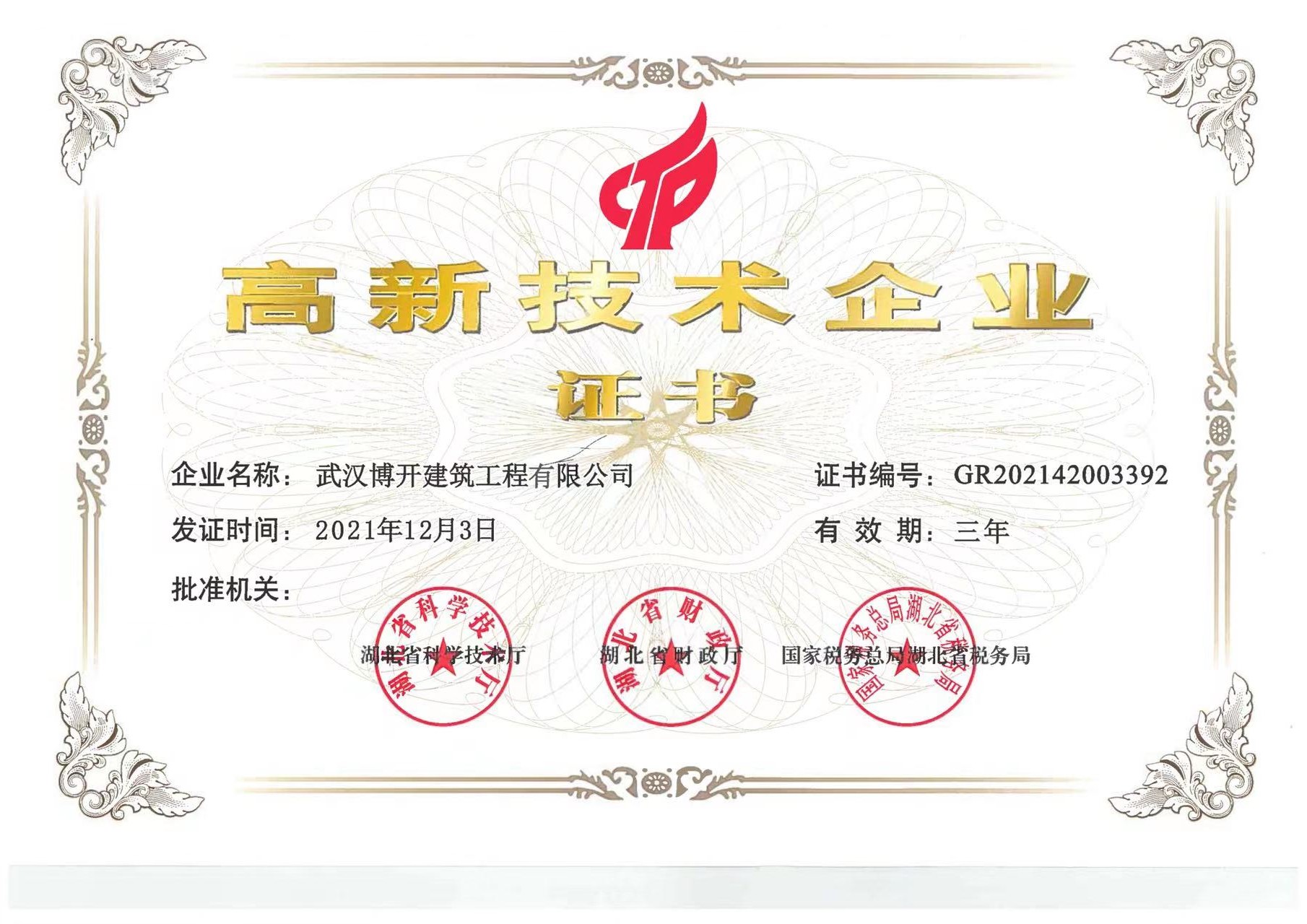 高新技術(shù)企業(yè)證書